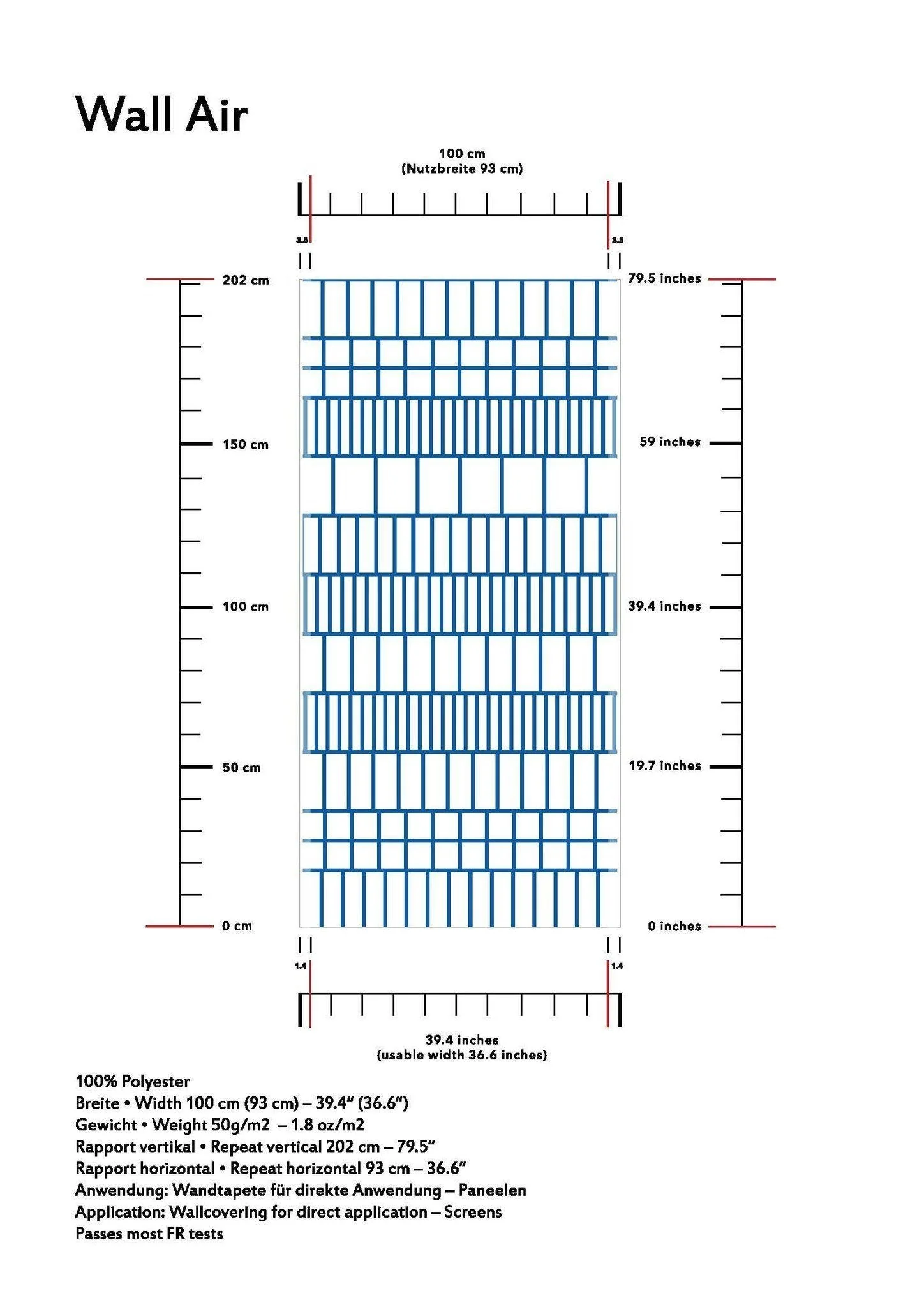 Repeat vertical - 202cm / 79.5" / Repeat Horizontal - 93cm / 36.6"
